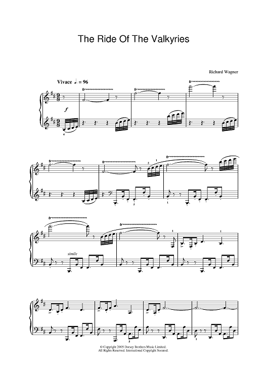 Digital Sheet Music for The Ride Of The Valkyries by Richard Wagner scored for Piano; id:388091