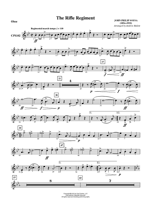 "The Rifle Regiment - Oboe" Sheet Music by John Philip Sousa