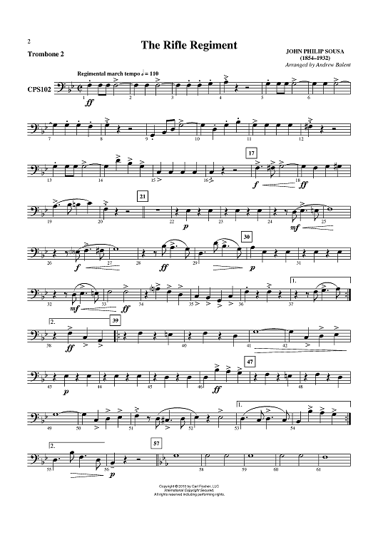 "The Rifle Regiment - Trombone 2" Sheet Music by John Philip Sousa