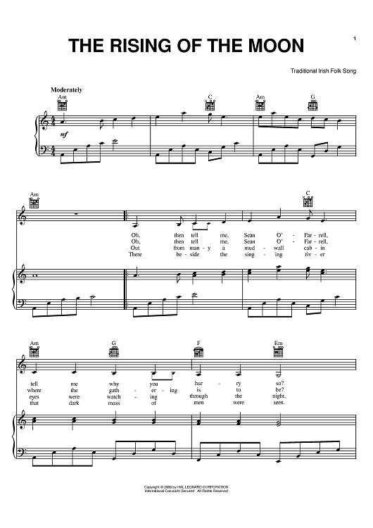 "The Rising Of The Moon" Sheet Music by Traditional Irish Folksong