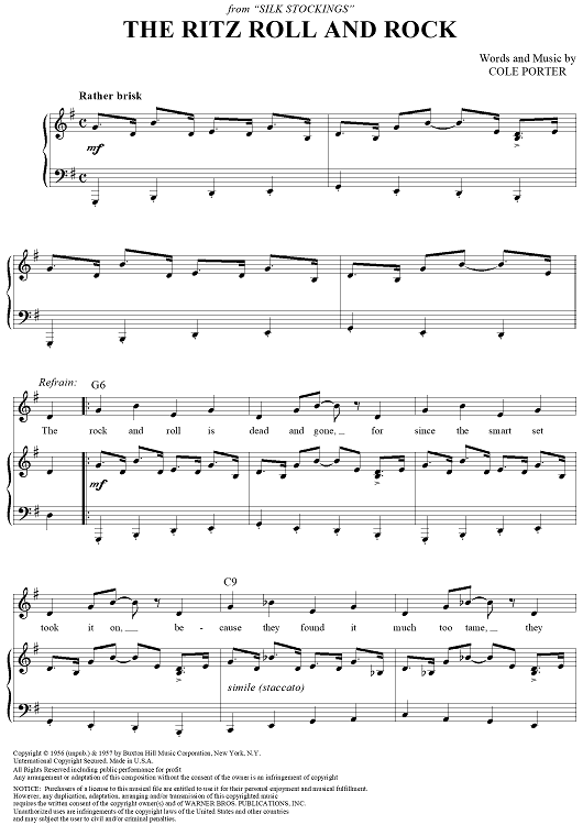 Digital Sheet Music for The Ritz Roll and Rock by Cole Porter scored for Piano/Vocal/Chords; id:316988