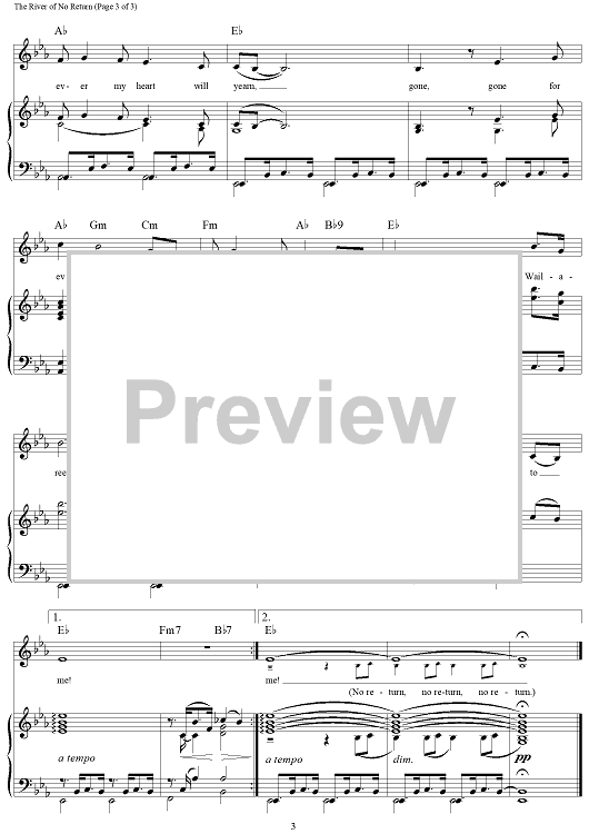 Digital Sheet Music for The River of No Return by Marilyn Monroe, Lionel Newman, Ken Darby scored for Piano/Vocal/Chords; id:305453