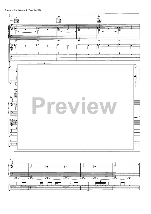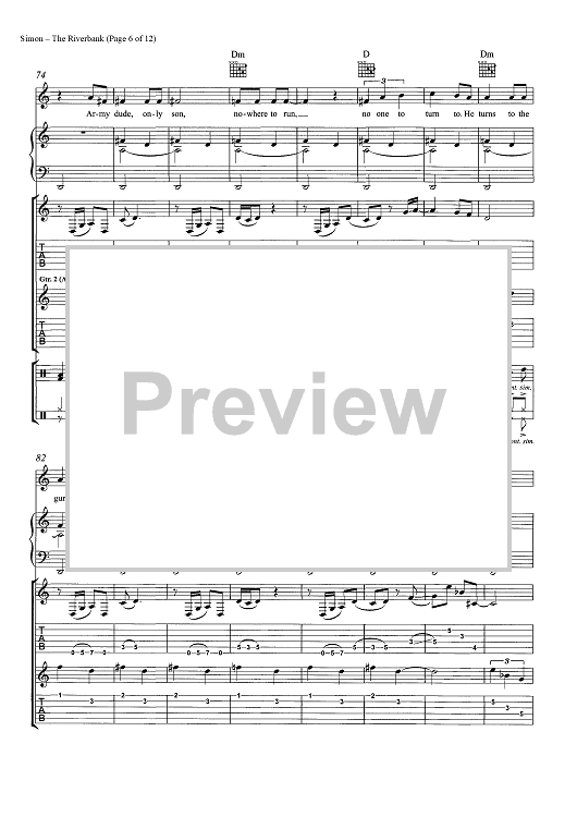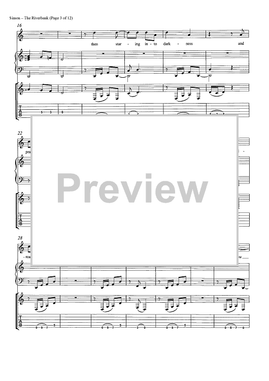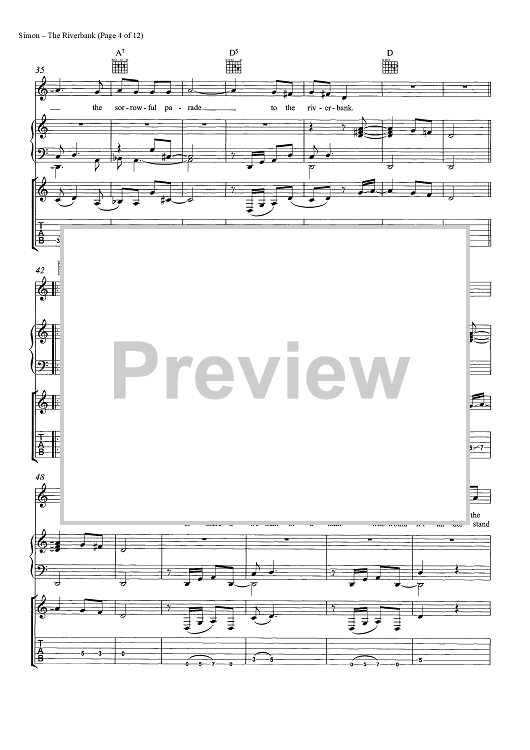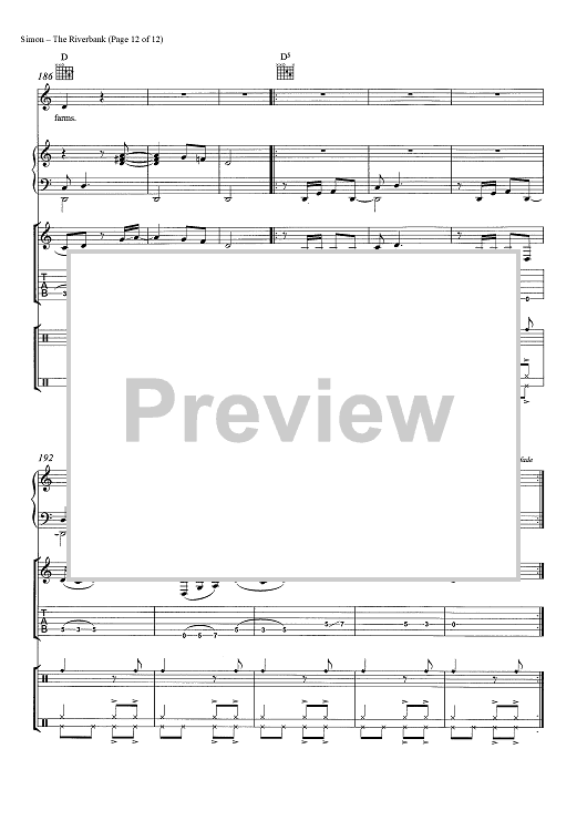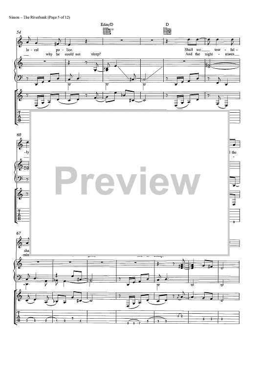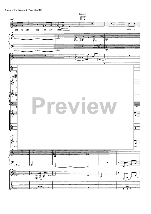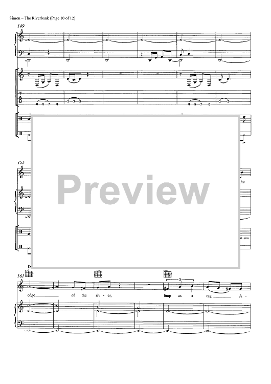 Digital Sheet Music for The Riverbank by Paul Simon scored for Guitar Tab/Piano/Vocal/Chords; id:465546