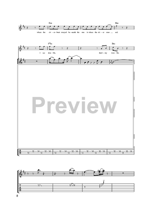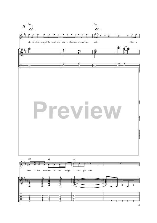 Digital Sheet Music for The Riverboat Song by Steve Cradock, Simon Fowler, Oscar Harrison, Damon Minchella, Ocean Colour Scene, x scored for Guitar Tab; id:393853