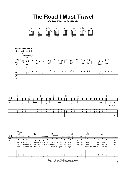 "The Road I Must Travel" Sheet Music by Tom Morello