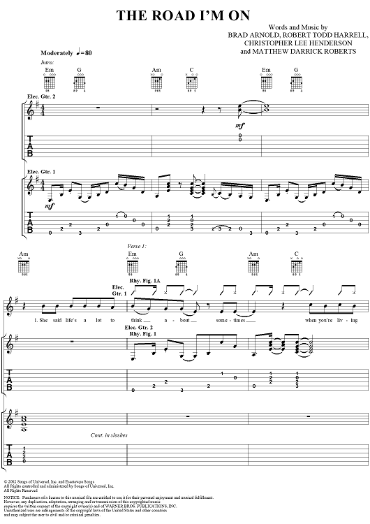 "The Road I'm On" Sheet Music by 3 Doors Down