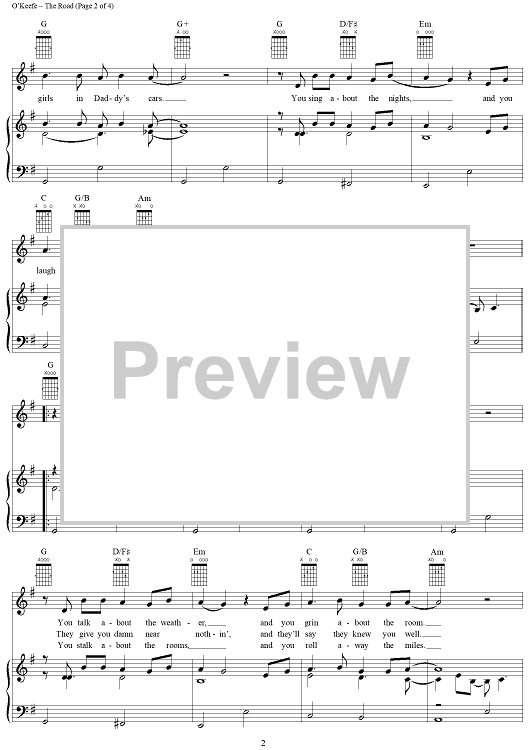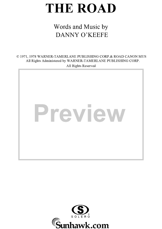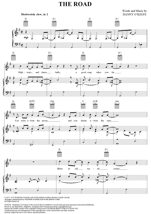 Digital Sheet Music for The Road by Jackson Browne, Danny O'Keefe scored for Piano/Vocal/Chords; id:252717