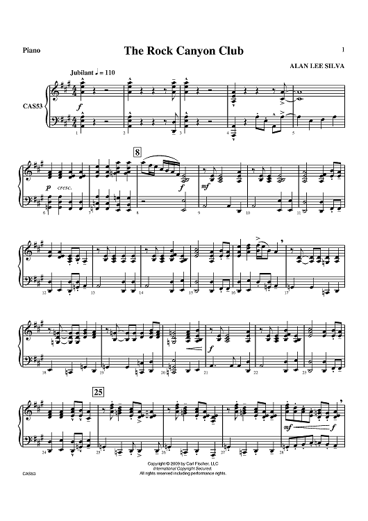 "The Rock Canyon Club - Piano" Sheet Music by Alan Lee Silva
