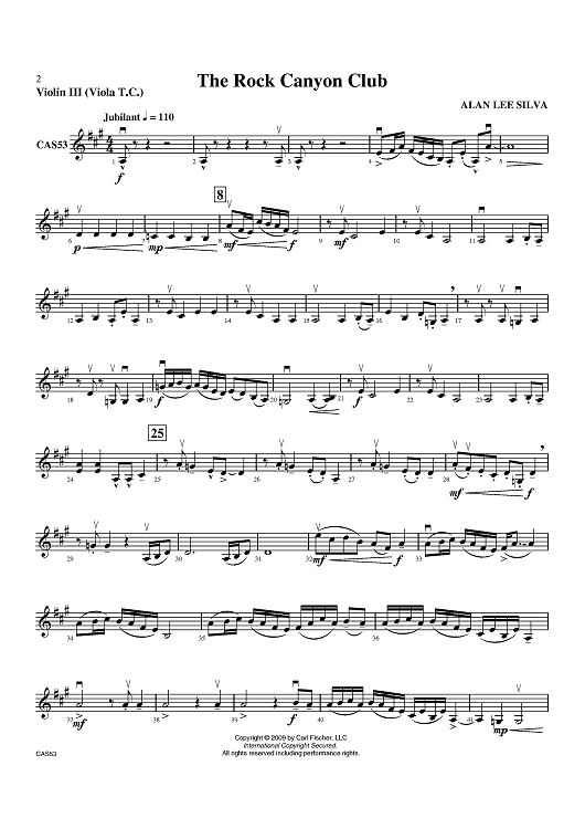 "The Rock Canyon Club - Violin 3" Sheet Music by Alan Lee Silva