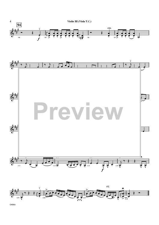 Digital Sheet Music for The Rock Canyon Club - Violin 3 by Alan Lee Silva scored for Orchestra; id:408301