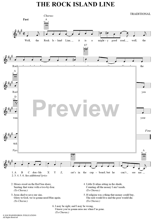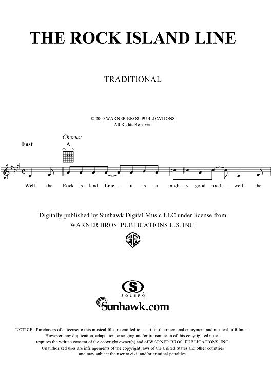 Digital Sheet Music for The Rock Island Line by Traditional scored for Lead Sheet; id:292705