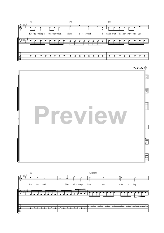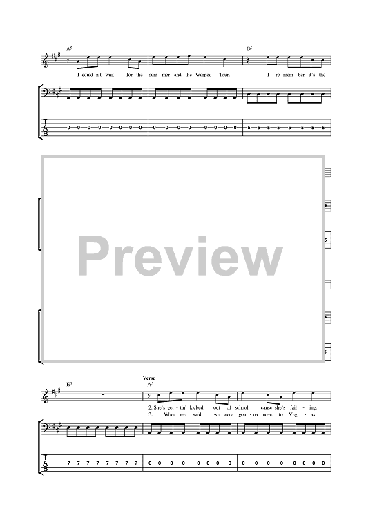Digital Sheet Music for The Rock Show by Travis Barker, Mark Hoppus, blink-182 scored for Bass Tab; id:377911