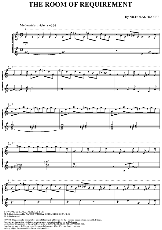 "The Room of Requirement" Sheet Music by Nicholas Hooper