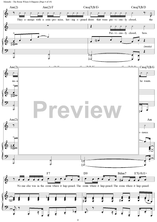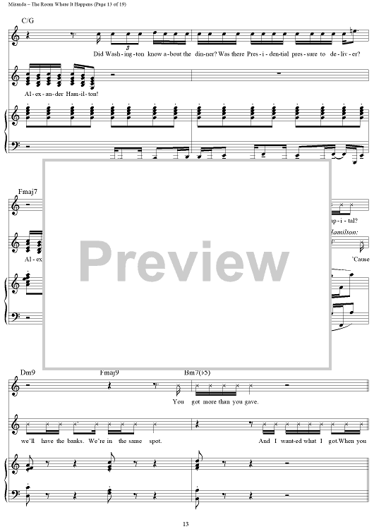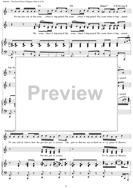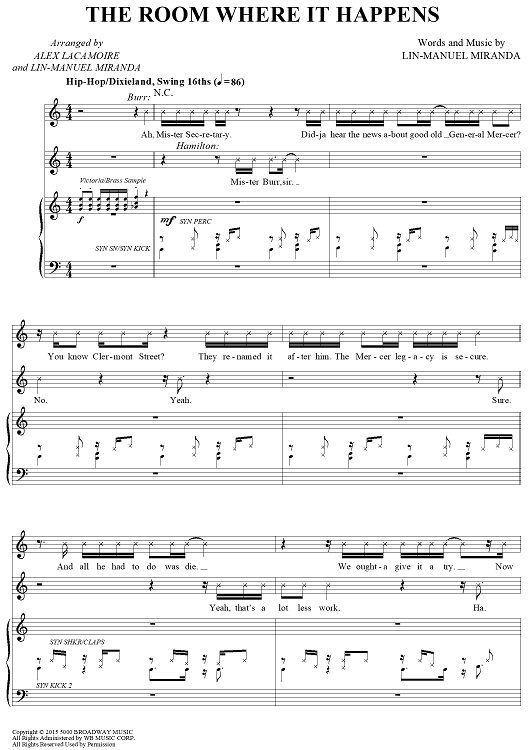 Digital Sheet Music for The Room Where It Happens by Lin-Manuel Miranda, Alex Lacamoire scored for Piano/Vocal/Chords; id:457579