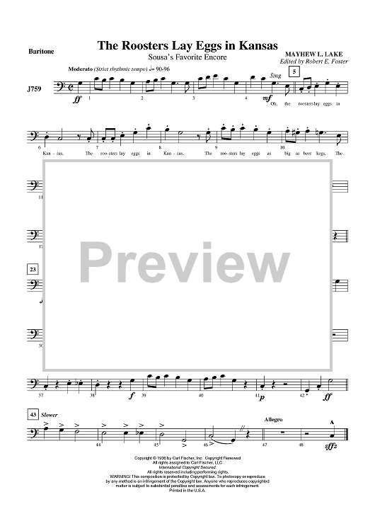 Digital Sheet Music for The Roosters Lay Eggs In Kansas - Baritone by Mayhew Lake scored for Concert Band; id:409259