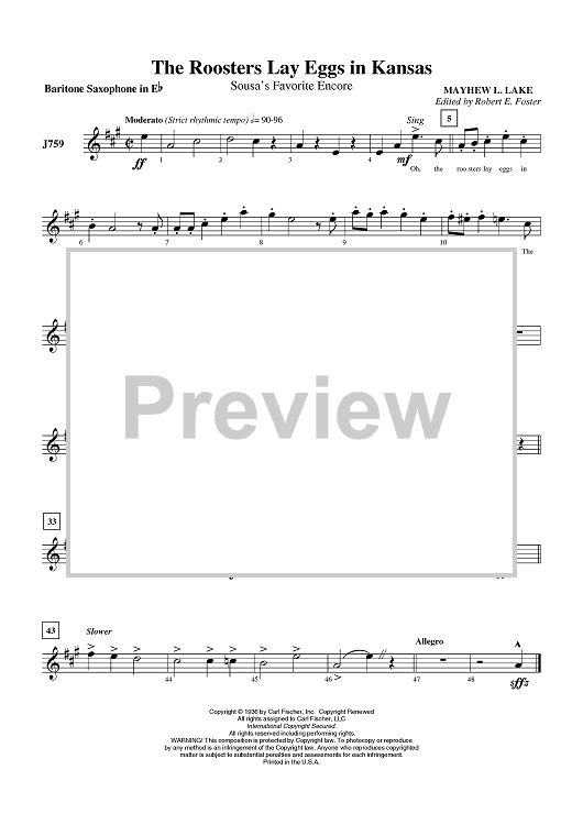 "The Roosters Lay Eggs In Kansas - Baritone Sax" Sheet Music by Mayhew Lake