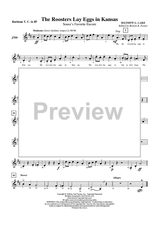 Digital Sheet Music for The Roosters Lay Eggs In Kansas - Baritone TC by Mayhew Lake scored for Concert Band; id:409258