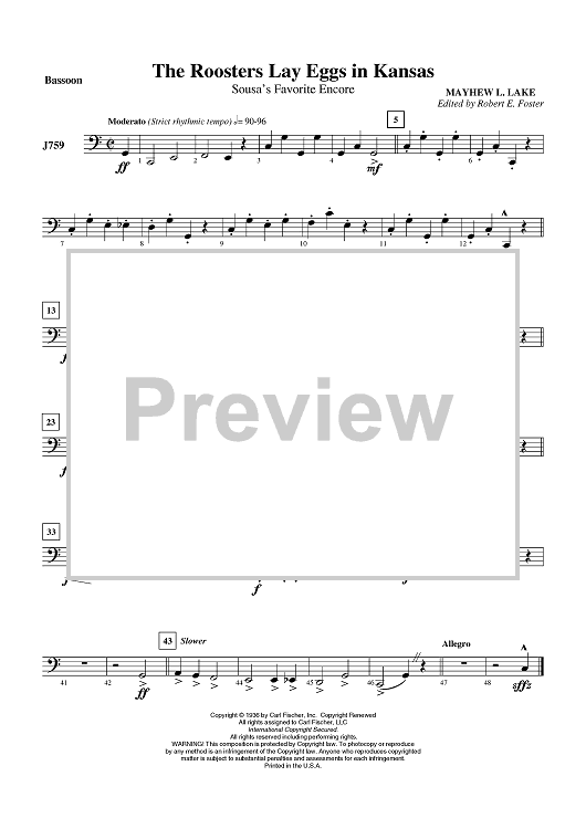 "The Roosters Lay Eggs In Kansas - Bassoon" Sheet Music by Mayhew Lake