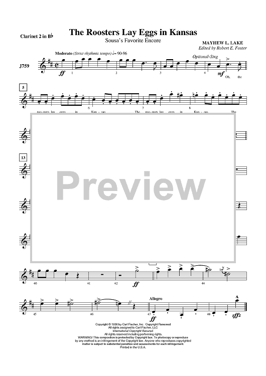 "The Roosters Lay Eggs In Kansas - Clarinet 2 in B-flat" Sheet Music by Mayhew Lake