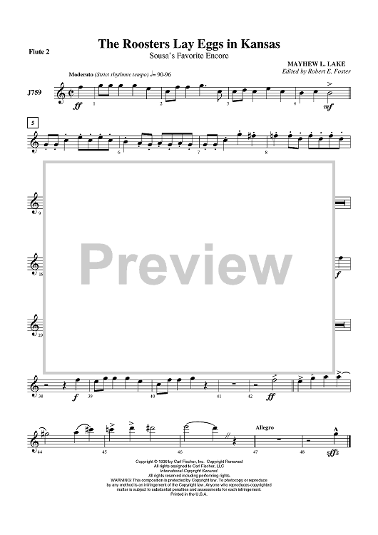 "The Roosters Lay Eggs In Kansas - Flute 2" Sheet Music by Mayhew Lake