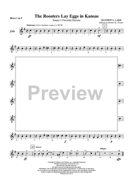Digital Sheet Music for The Roosters Lay Eggs In Kansas - Horn in F 1 by Mayhew Lake scored for Concert Band; id:409251