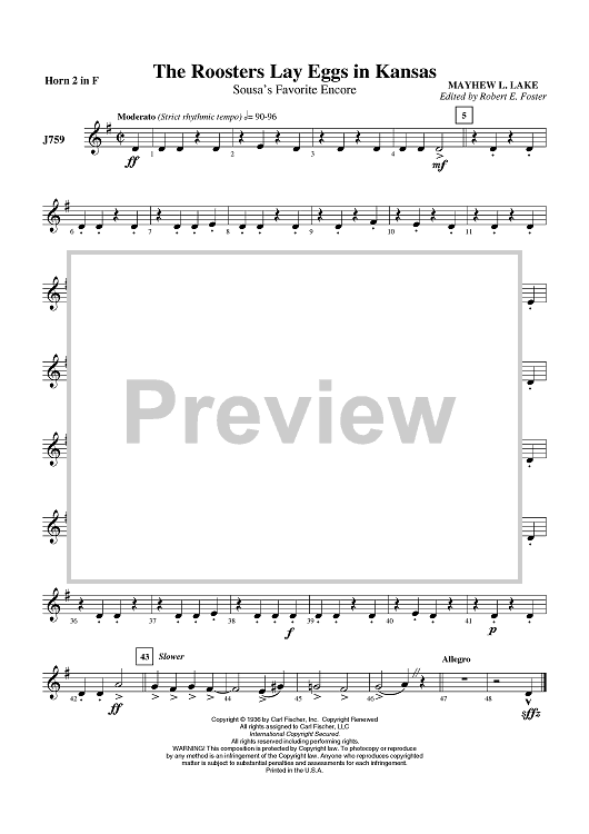 Digital Sheet Music for The Roosters Lay Eggs In Kansas - Horn in F 2 by Mayhew Lake scored for Concert Band; id:409252