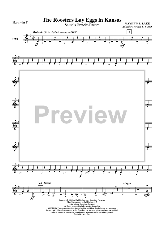Digital Sheet Music for The Roosters Lay Eggs In Kansas - Horn in F 4 by Mayhew Lake scored for Concert Band; id:409254