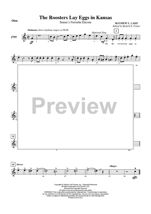 "The Roosters Lay Eggs In Kansas - Oboe" Sheet Music by Mayhew Lake