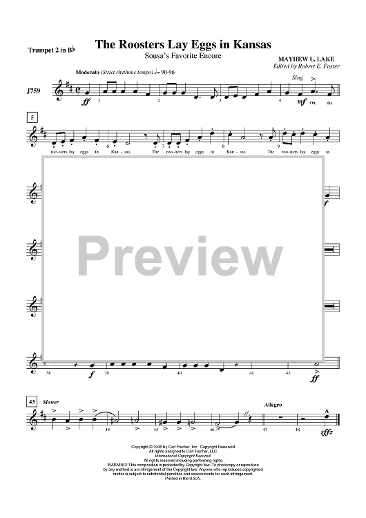 Digital Sheet Music for The Roosters Lay Eggs In Kansas - Trumpet 2 in B-flat by Mayhew Lake scored for Concert Band; id:409249