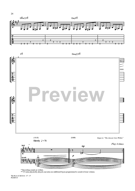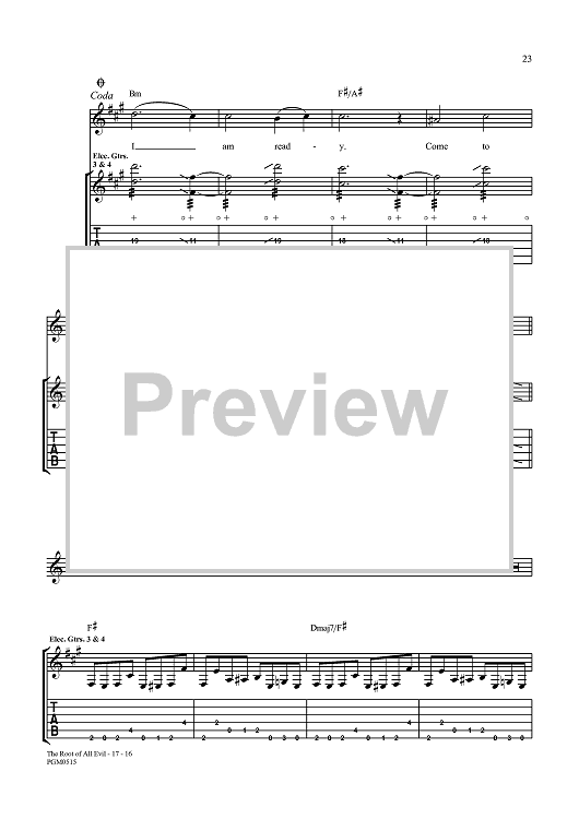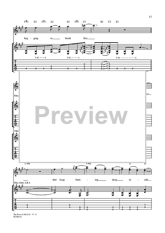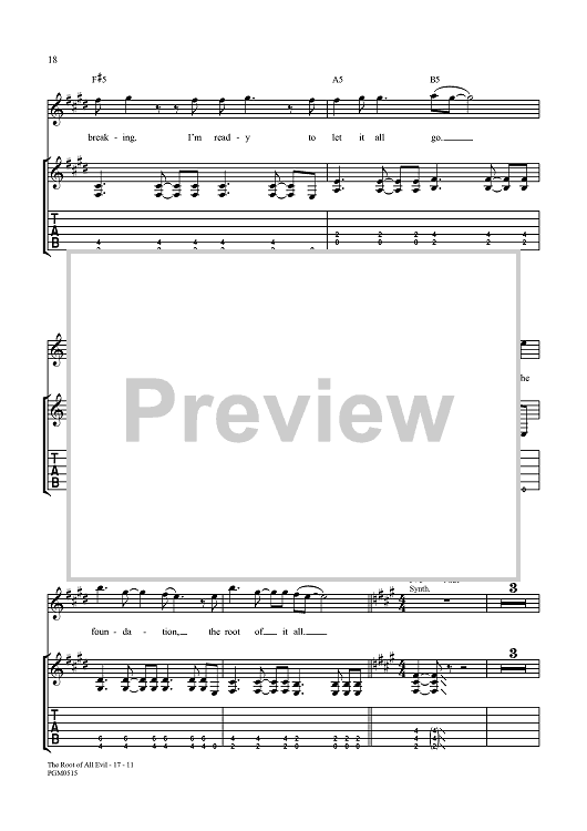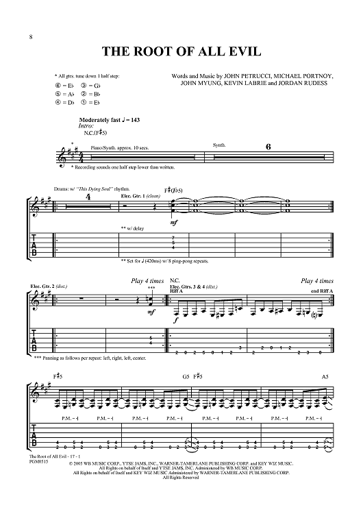 Digital Sheet Music for The Root of All Evil by John Myung, Michael Portnoy, Dream Theater, John Petrucci, Jordan Rudess, James LaBrie scored for Guitar Tab/Vocal; id:360019