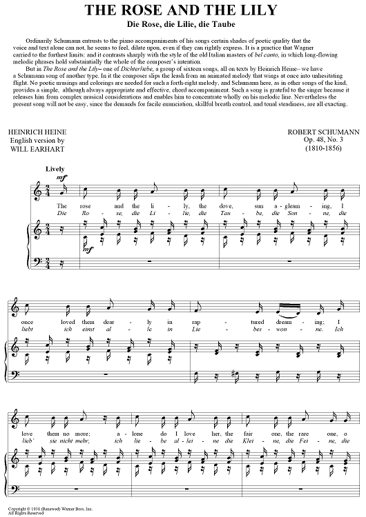"The Rose And The Lily (Die Rose, die lilie, die Taube)" Sheet Music by Robert Schumann