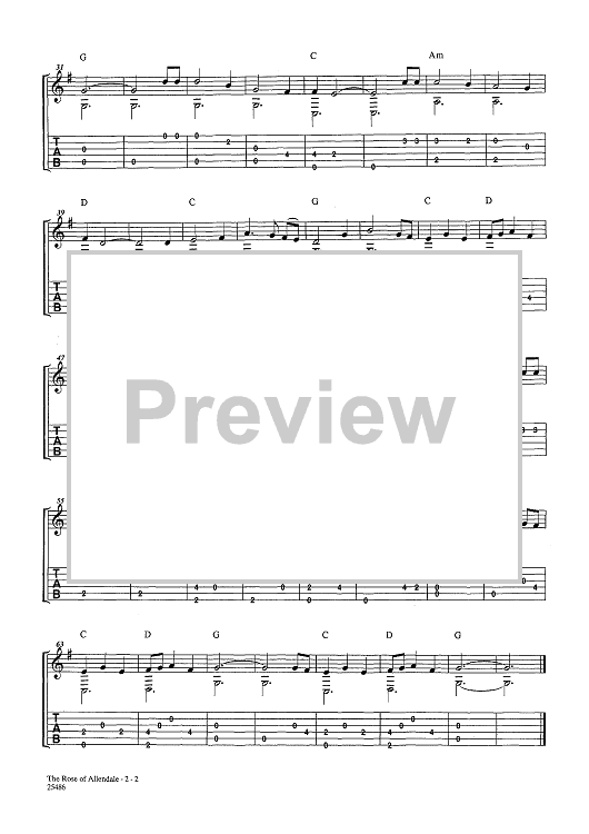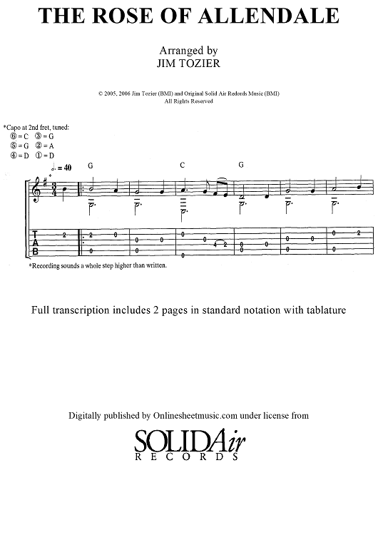 Digital Sheet Music for The Rose of Allendale (With Embedded Audio) by Traditional Irish Melody, Jim Tozier scored for Guitar Tab; id:451641