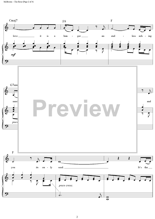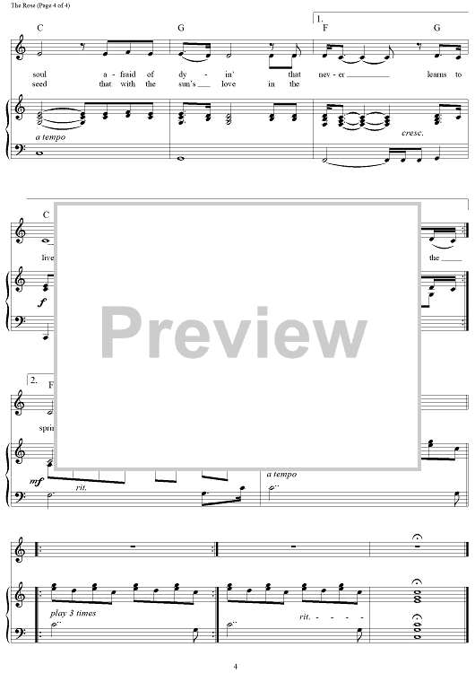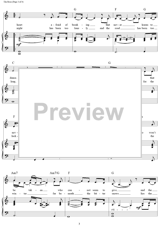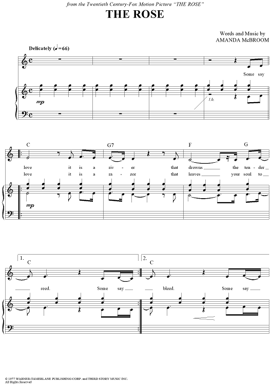 Digital Sheet Music for The Rose by Amanda McBroom, Bette Midler scored for Piano/Vocal/Chords; id:94761