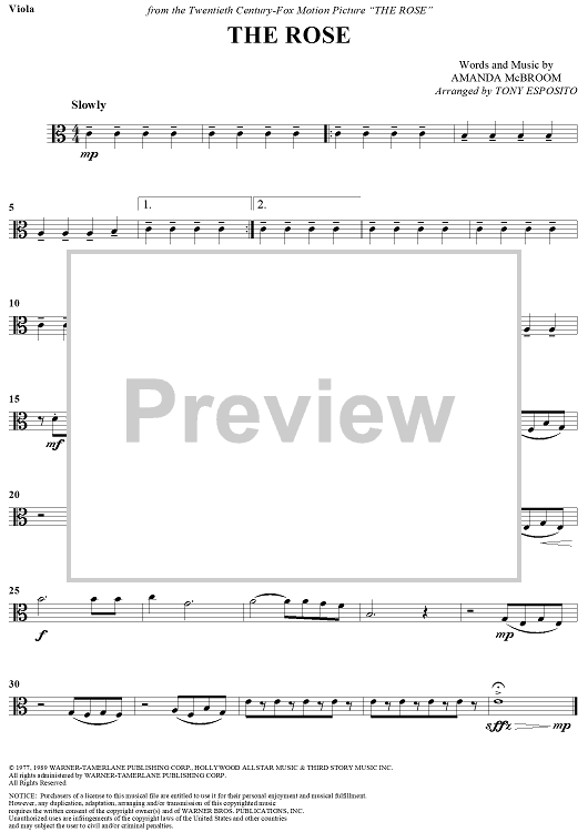 Digital Sheet Music for The Rose - Viola by , Tony Esposito, Amanda McBroom scored for String Quartet; id:317408