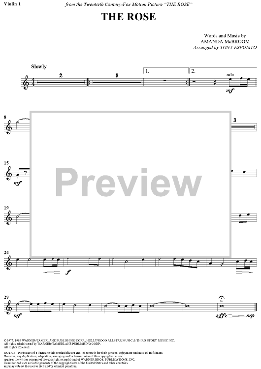 "The Rose - Violin 1" Sheet Music by Amanda McBroom