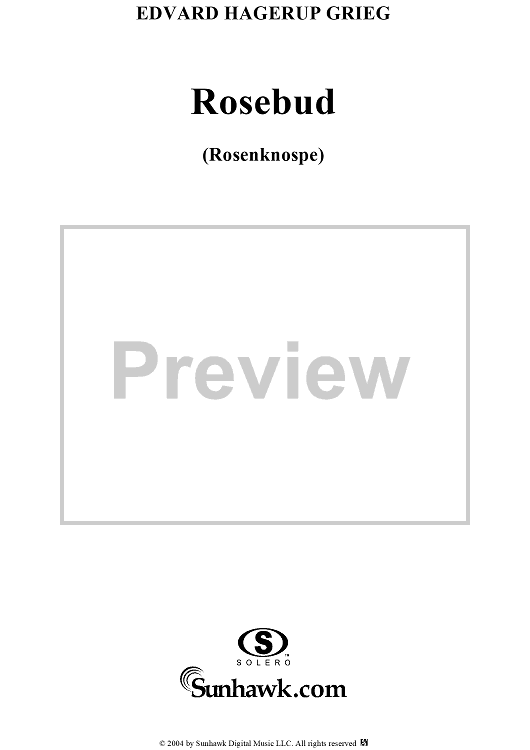 Digital Sheet Music for The Rosebud, Op. 18, No. 8 by Edvard Grieg, Hans Christian Andersen scored for Voice/Piano; id:303570