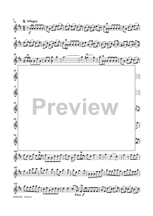 "The Royal Fireworks Music - Violin 2" Sheet Music by George Frideric Handel