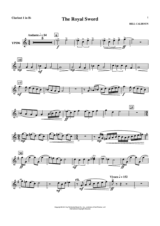 "The Royal Sword - Clarinet 1 in Bb" Sheet Music by Bill Calhoun