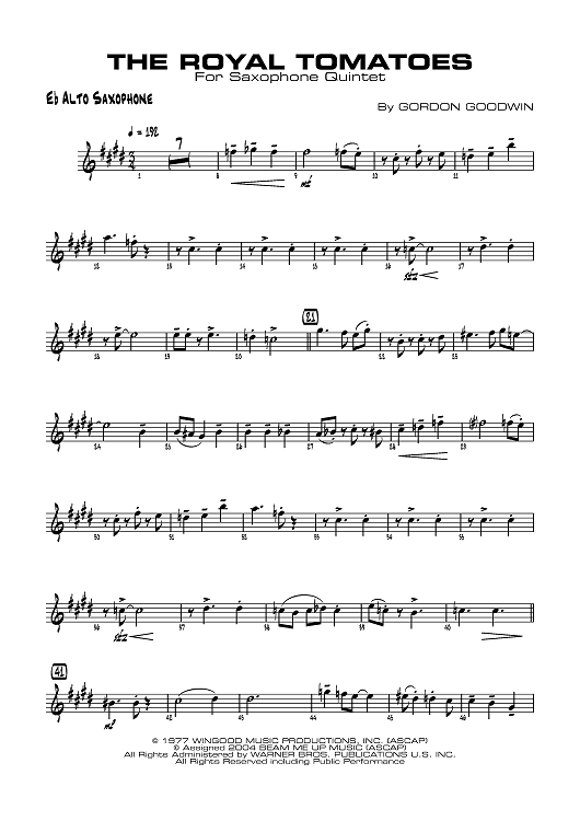 "The Royal Tomatoes - E-flat Alto Saxophone" Sheet Music by Gordon Goodwin