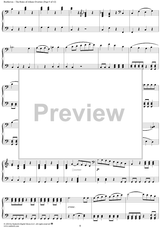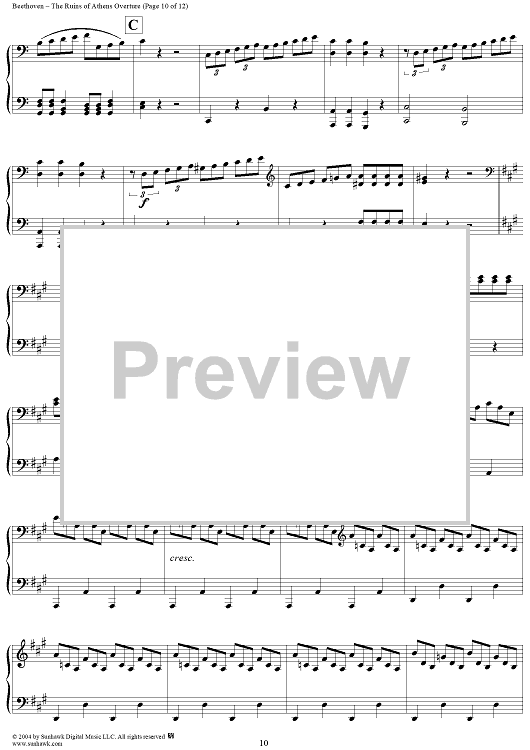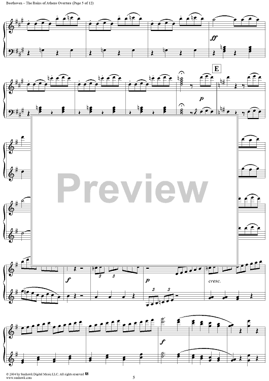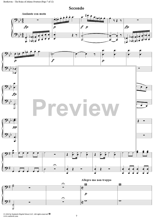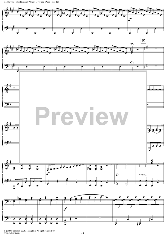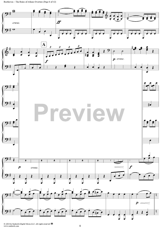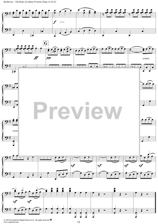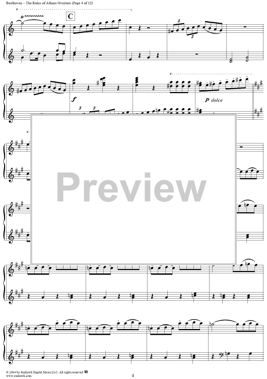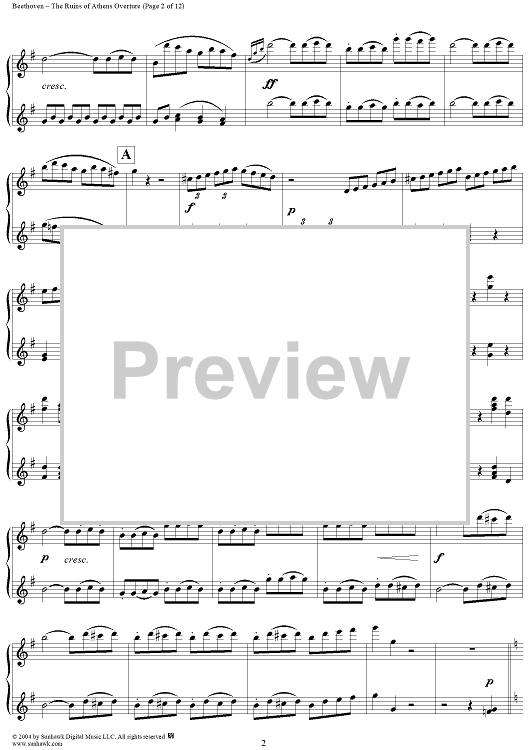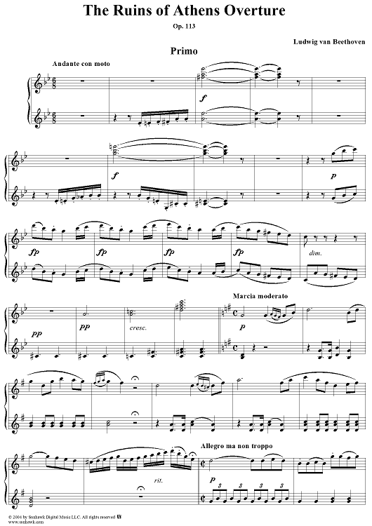 Digital Sheet Music for The Ruins of Athens Overture by Ludwig van Beethoven scored for 1 Piano, 4 Hands; id:296369