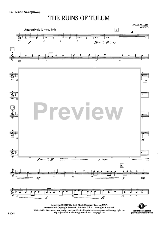 Digital Sheet Music for The Ruins of Tulum - Bb Tenor Sax by Jack Wilds scored for Concert Band; id:439357