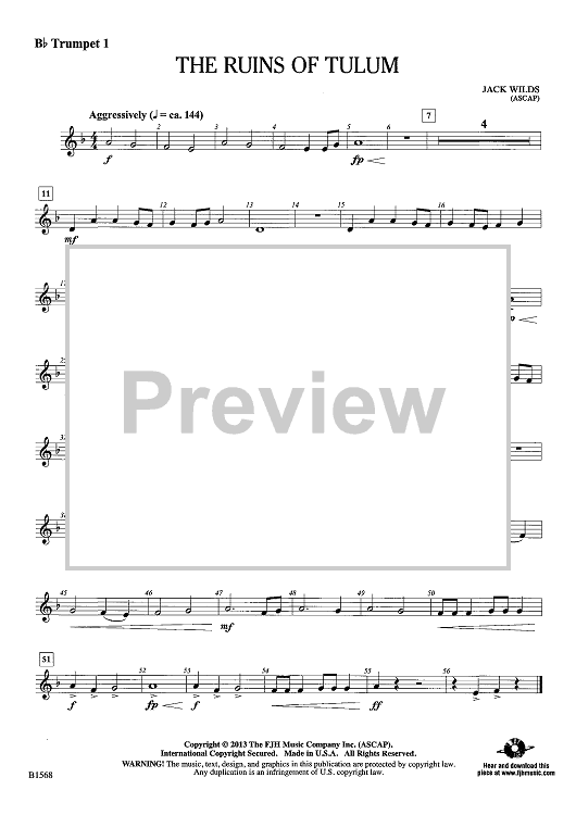 Digital Sheet Music for The Ruins of Tulum - Bb Trumpet 1 by Jack Wilds scored for Concert Band; id:439359