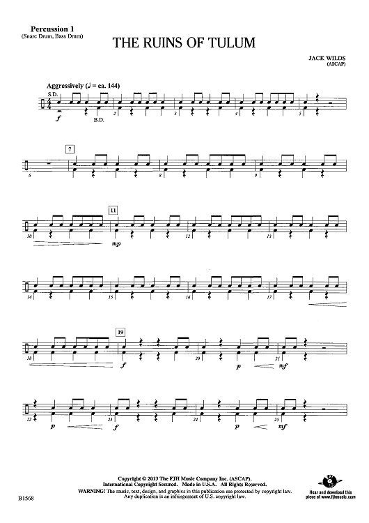 Digital Sheet Music for The Ruins of Tulum - Percussion 1 by Jack Wilds scored for Concert Band; id:439367
