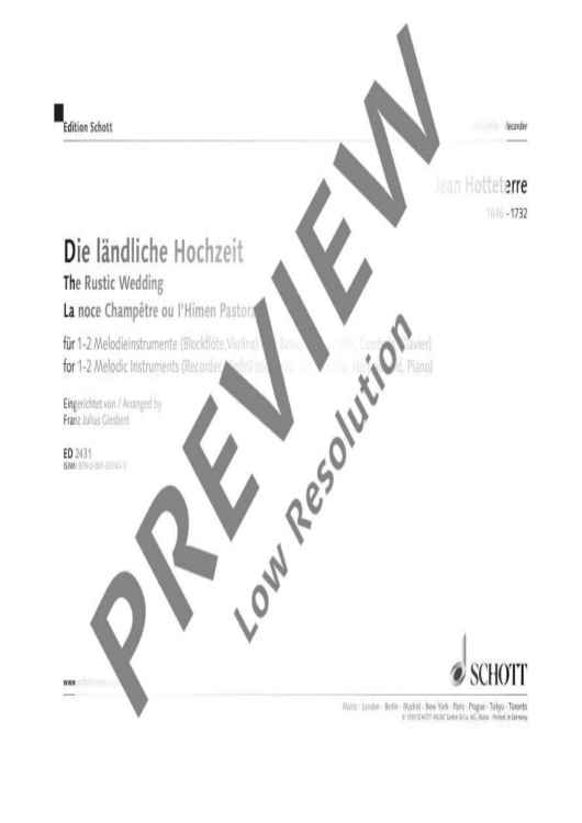 Digital Sheet Music for The Rustic Wedding by Franz Julius Giesbert, Jean Hotteterre scored for One Or More Melodic Instruments (recorders, Violins A.s.o.) With Various Accompaniment (recorder, Violoncello, Harpsichord, Pian; id:486353
