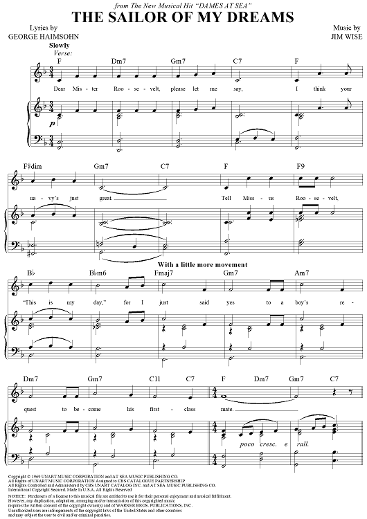 Digital Sheet Music for The Sailor of my Dreams by Jim Wise, George Haimsohn scored for Piano/Vocal/Chords; id:263863
