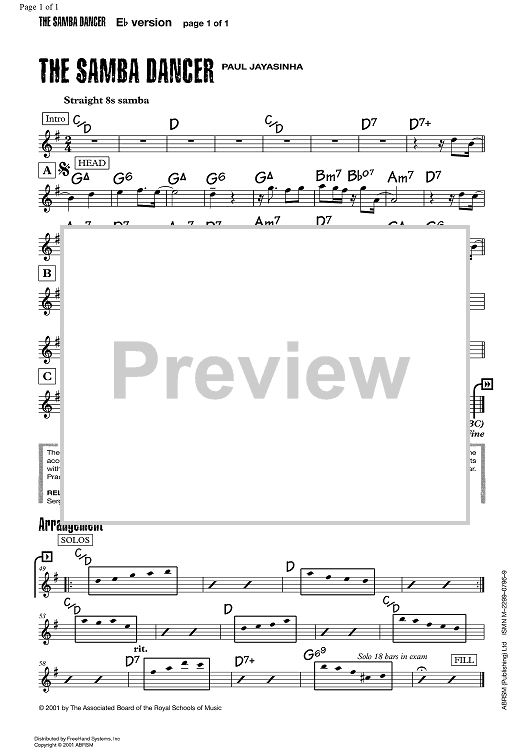 Digital Sheet Music for The Samba Dancer by , Paul Jayasinha scored for E-flat Lead Sheet; id:355572