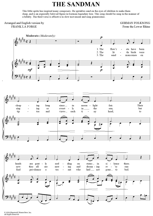 "The Sandman" Sheet Music by German Folksong