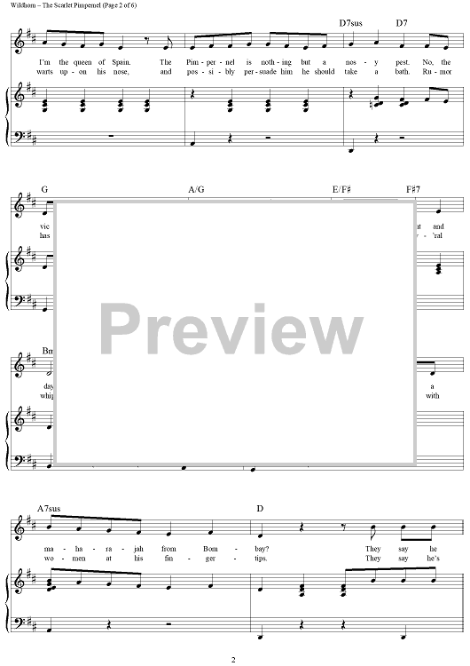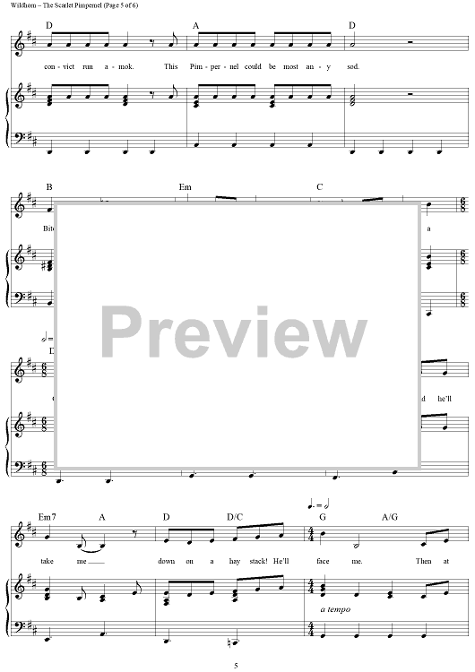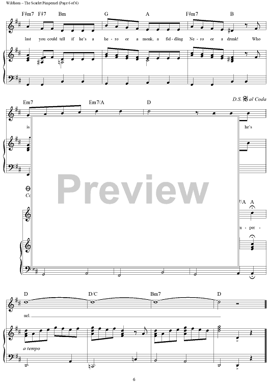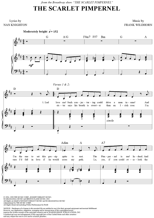 Digital Sheet Music for The Scarlet Pimpernel by Frank Wildhorn, Nan Knighton scored for Piano/Vocal/Chords; id:235243