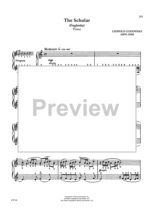 Digital Sheet Music for The Scholar (Fughetta) by Leopold Godowsky scored for 2 Pianos, 4 Hands; id:439610