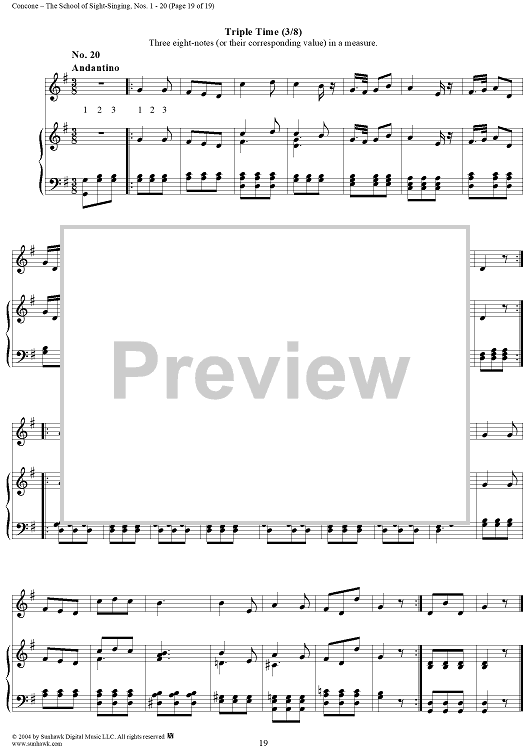 Digital Sheet Music for The School of Sight-Singing, Nos. 1 - 20 by Giuseppe Concone, B. Lutgen scored for Vocal Method; id:303371
